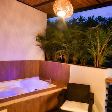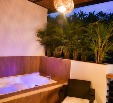 Relájate en nuestra lujosa habitación VIP con jacuzzi, aire acondicionado y balcón privado, baño privado, agua caliente y televisión por cable, ideal para una escapada romántica o familiar.